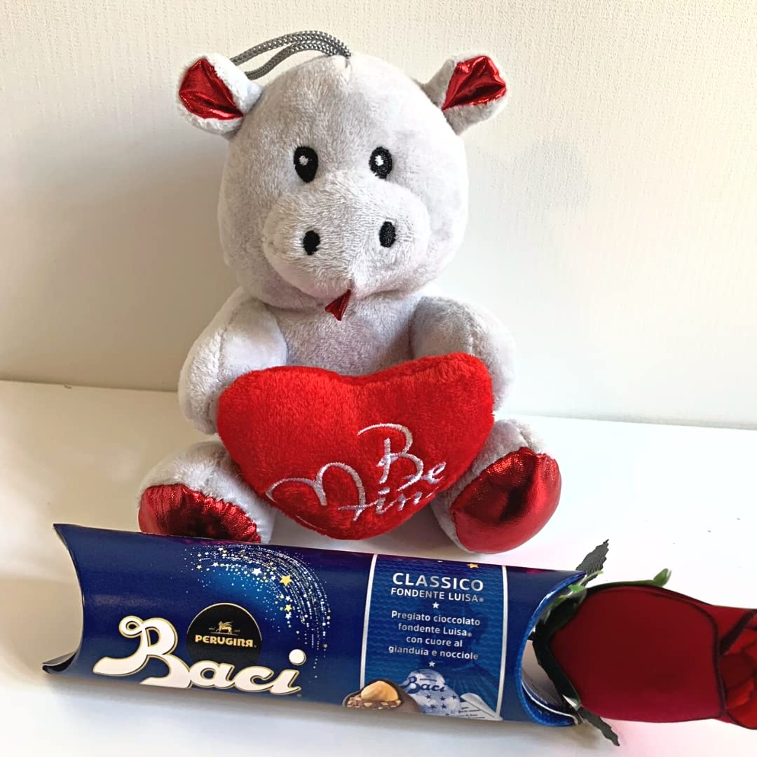set regalo san valentino con baci perugina peluche e rose artificiali